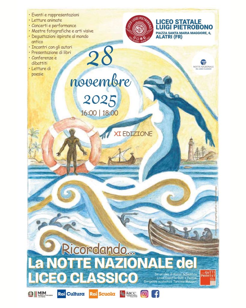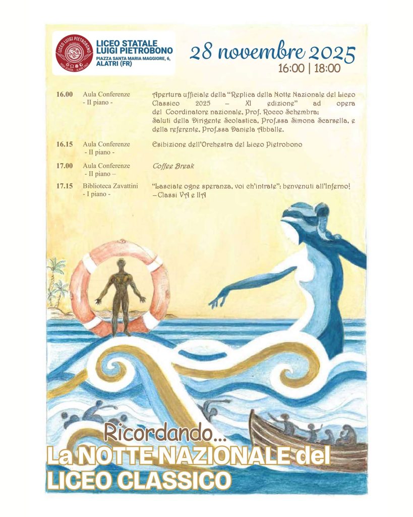 28 Novembre 2025 dalle ore 16:00 alle ore 18:00. P.zza S. M. Maggiore- Alatri(FR) XI Edizione La Notte Nazionale del Liceo Classico